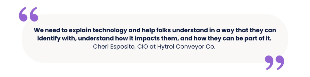 Advanced technology can be hard for a lot of people to wrap their heads around. When people don’t understand something, they push back. If CIOs want to avoid the pitchforks and torches, they need to master the ability to communicate complex ideas in a way that people can intuitively understand. As Esposito remarked: