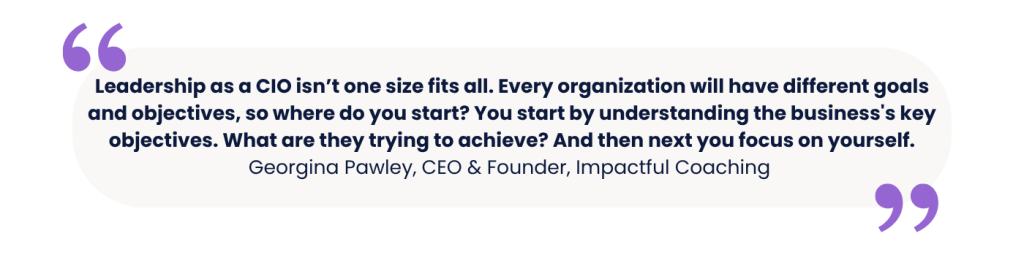 For CIOs to lead under this new paradigm, they must invest in themselves as much as possible. This involves understanding your strengths, promoting resilience, and prioritizing self-care. In her keynote on empowering IT leadership, Georgina Pawley, CEO & Founder of Impactful Coaching, had this to say: